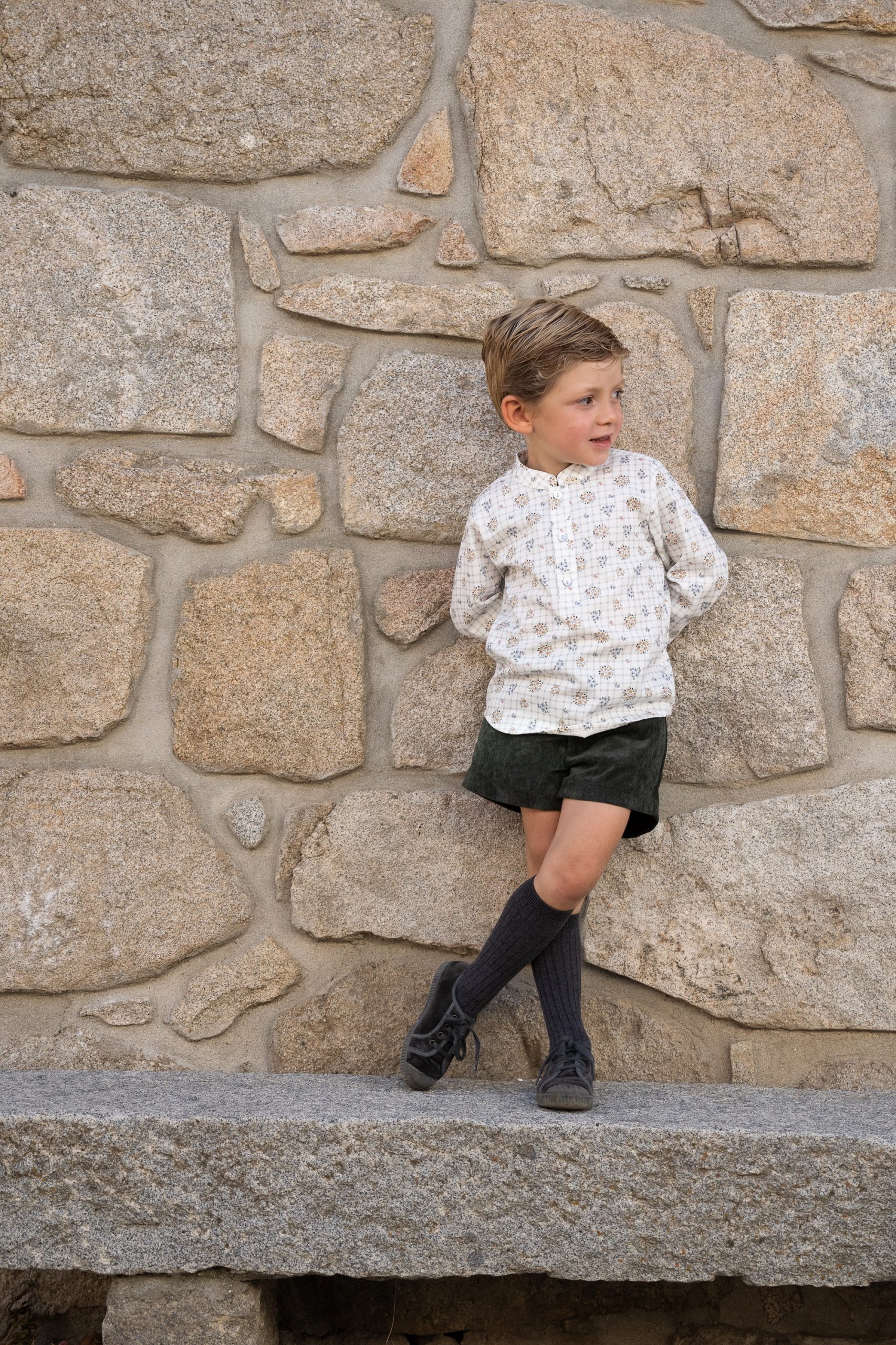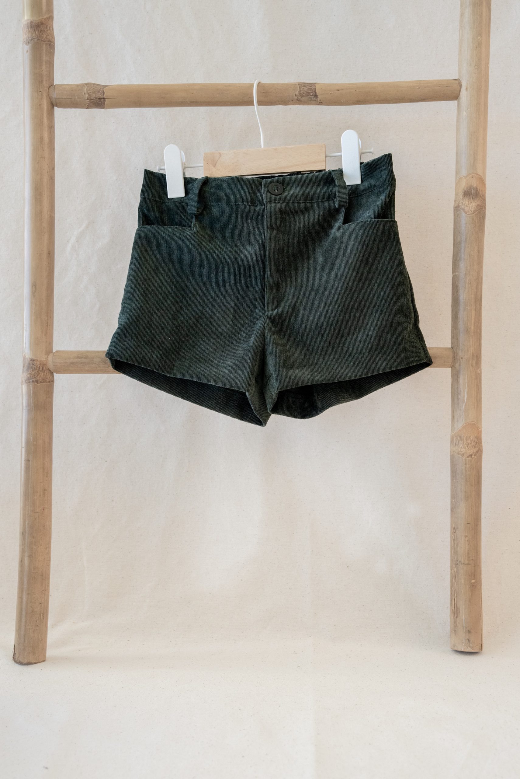 Bermuda confeccionada en pana con bolsillos en forma de L.