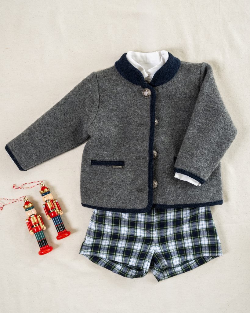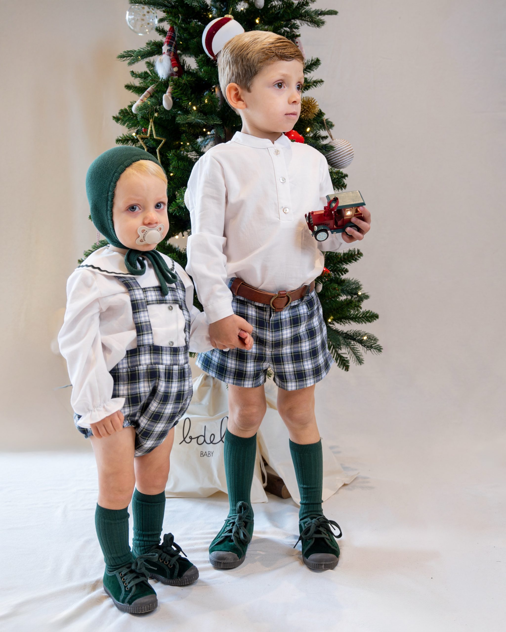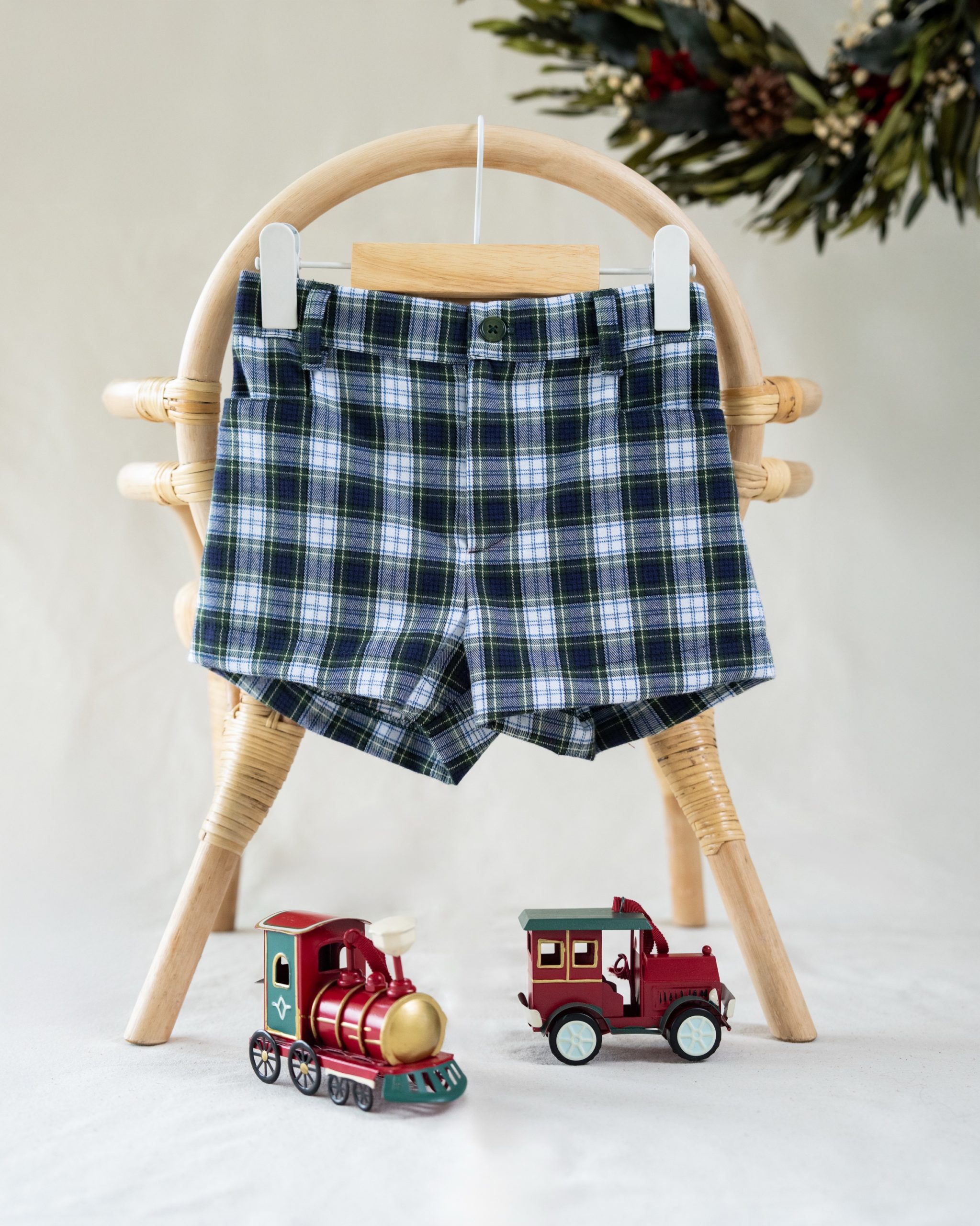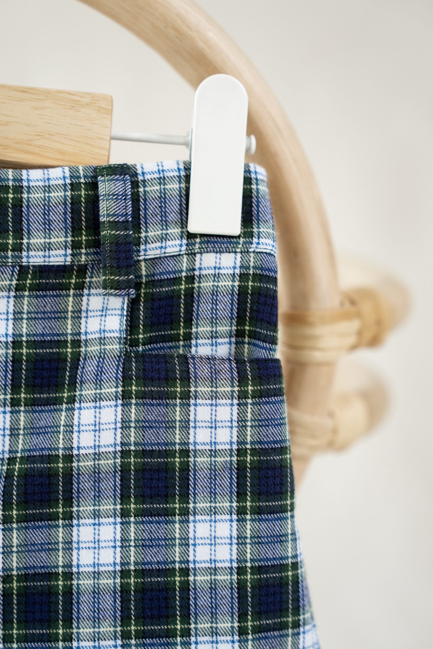 Bermuda confeccionada en viyela tartán con bolsillos en forma de L.