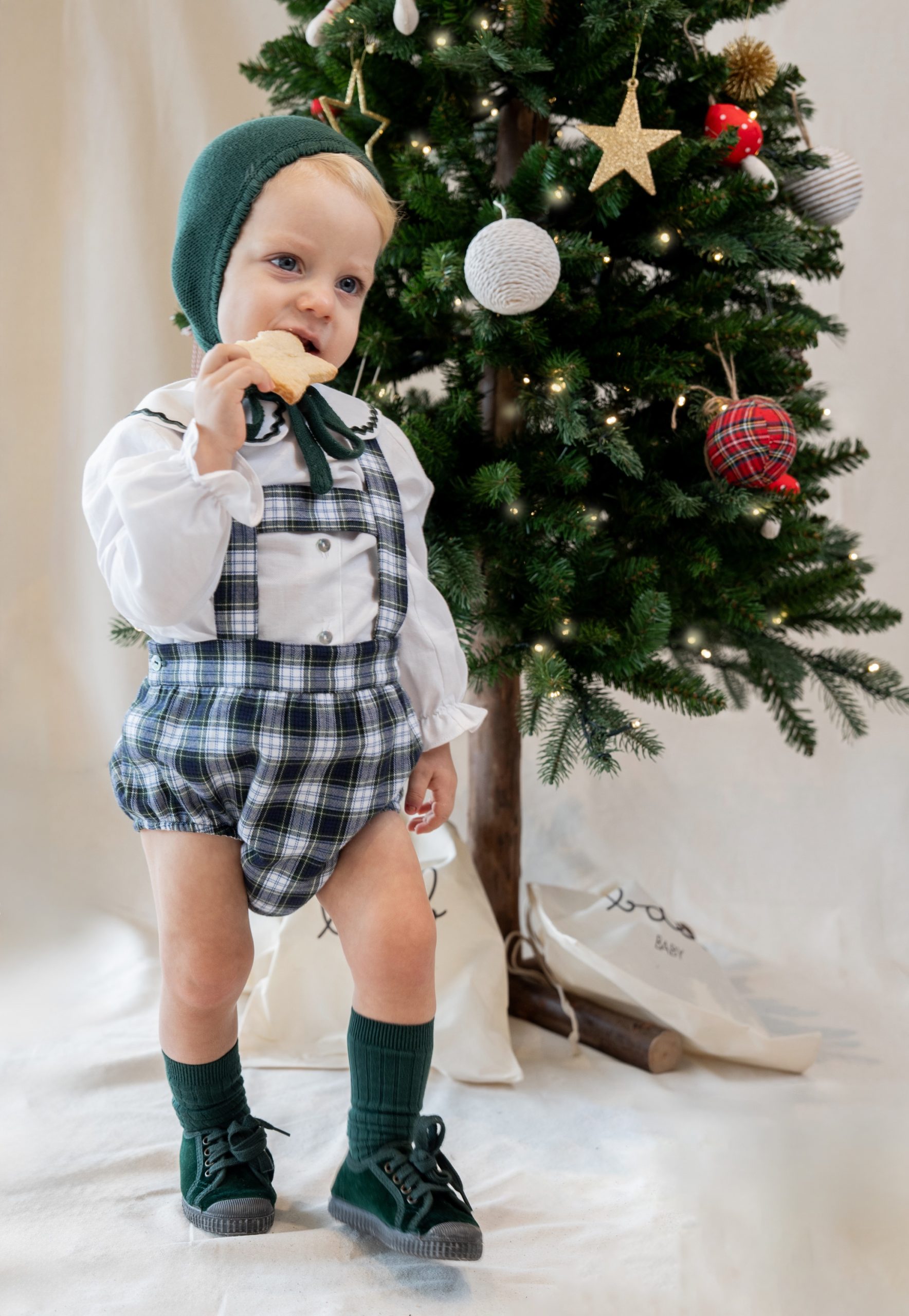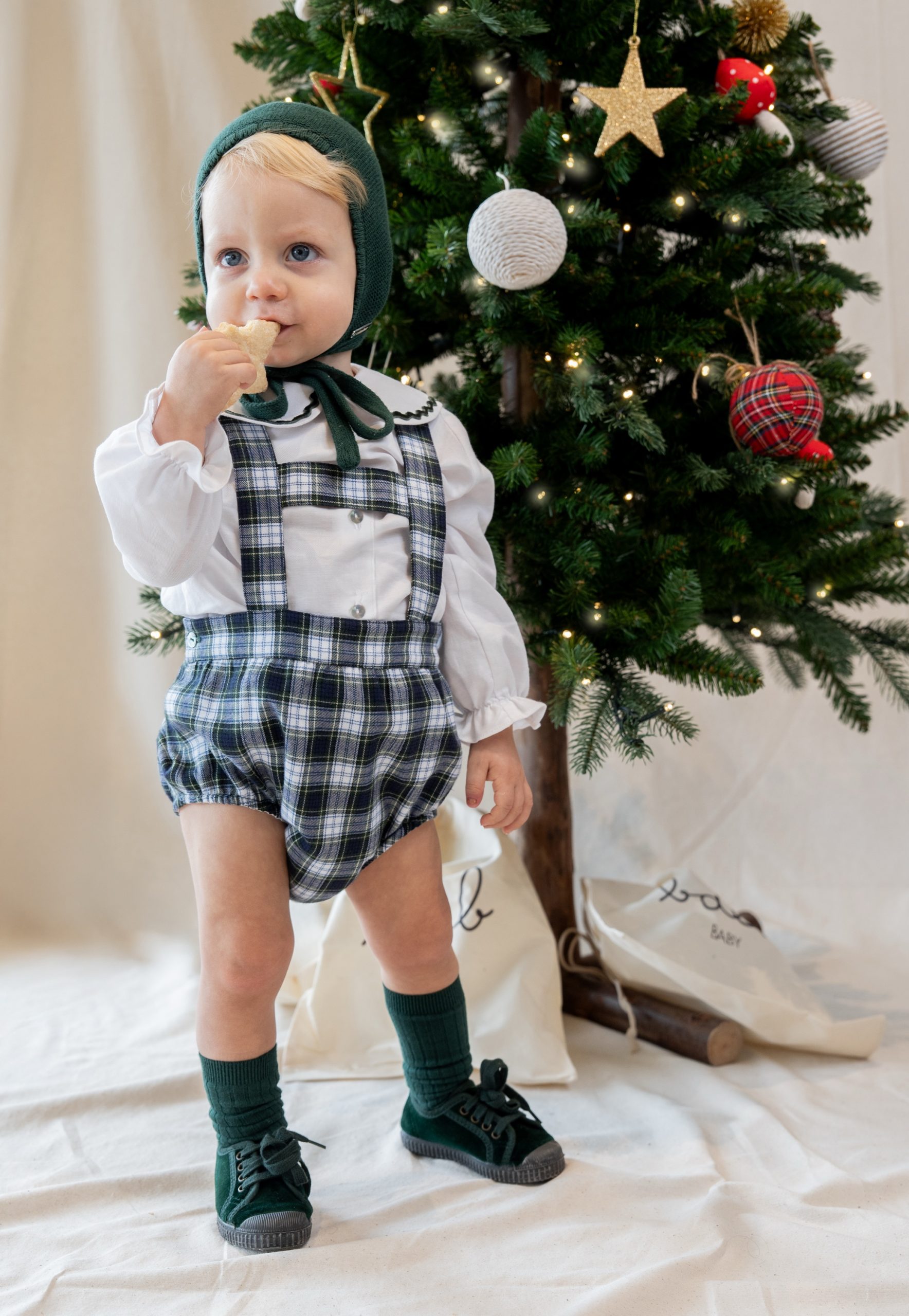 Bombacho con tirantes, confeccionado en viyela tartán y forrado en algodón 100%.