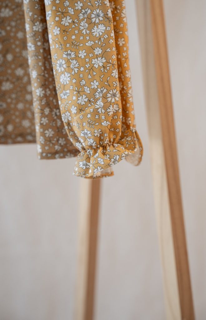 Camisa con cuello volante y detalle de punto smock. Confeccionada en algodón 100%.