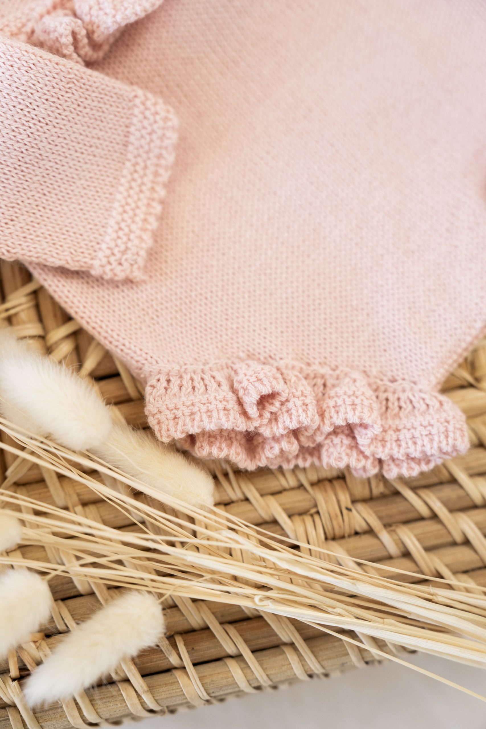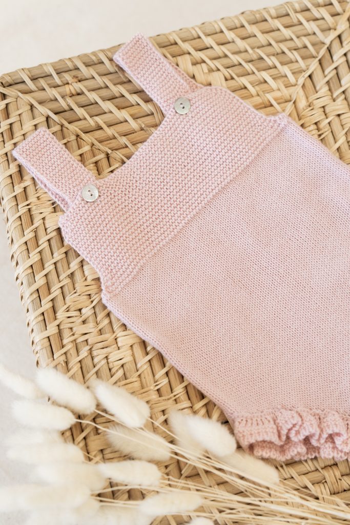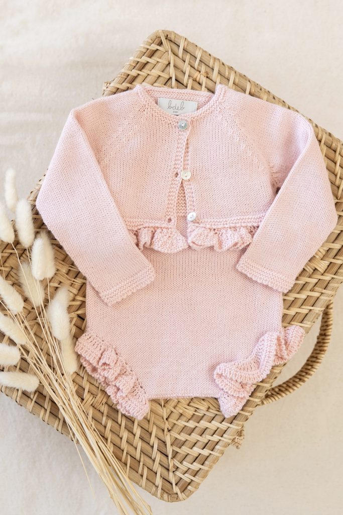 Conjunto de ranita de tirantes con detalle de volante en la pierna y chaqueta corta con volante en el bajo.