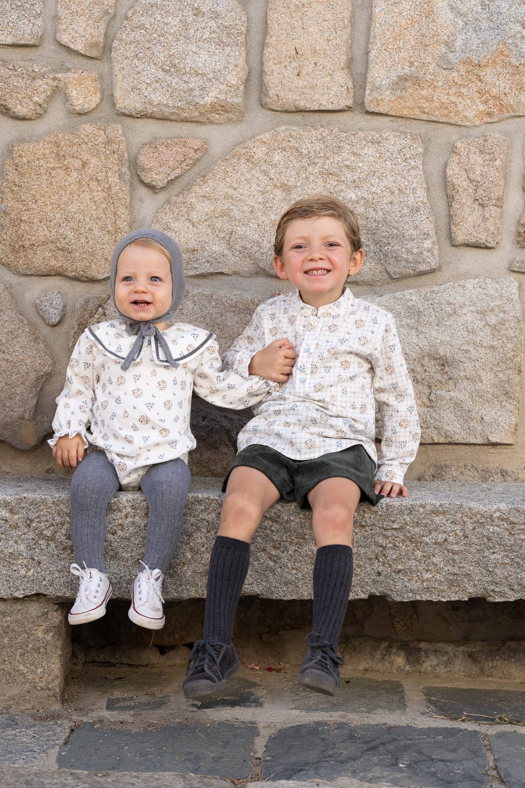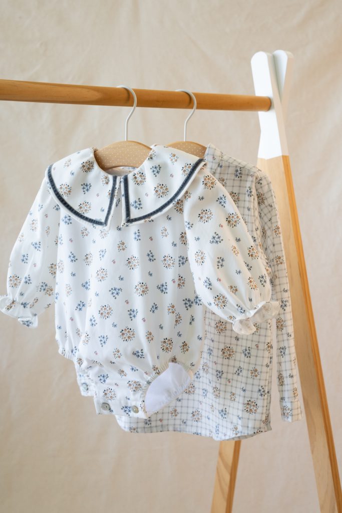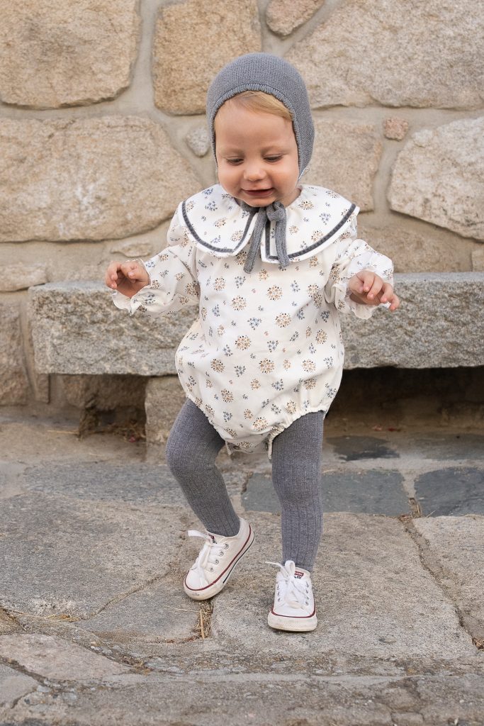 Tanto el puño como el muslo llevan goma blanda para no dañar la piel del bebé y lleva botones de nácar en la entrepierna para facilitar el cambio de pañal.