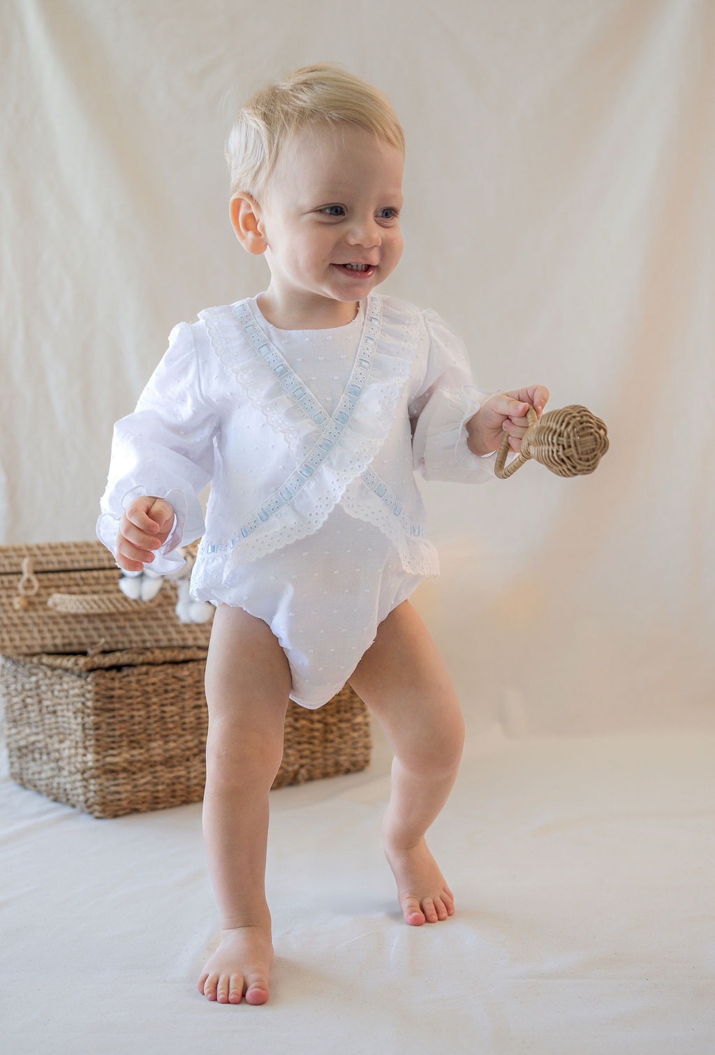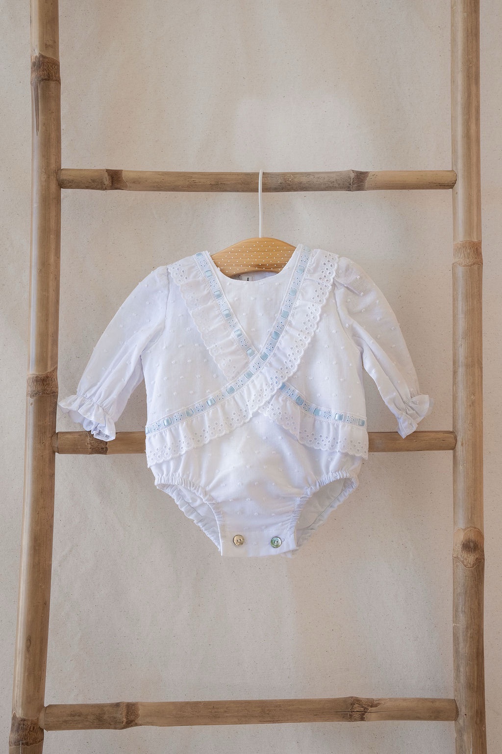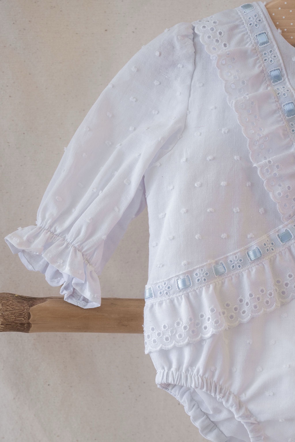 Pelele confeccionado en plumeti y forrado en algodón 100%.