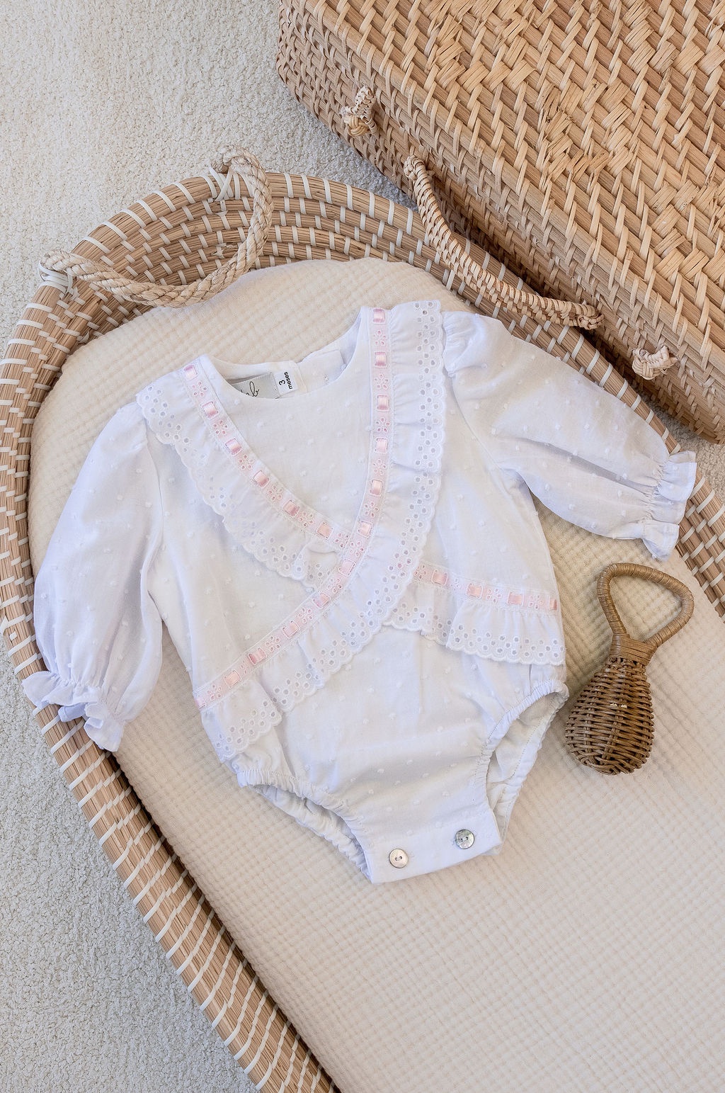 Pelele confeccionado en plumeti y forrado en algodón 100%.