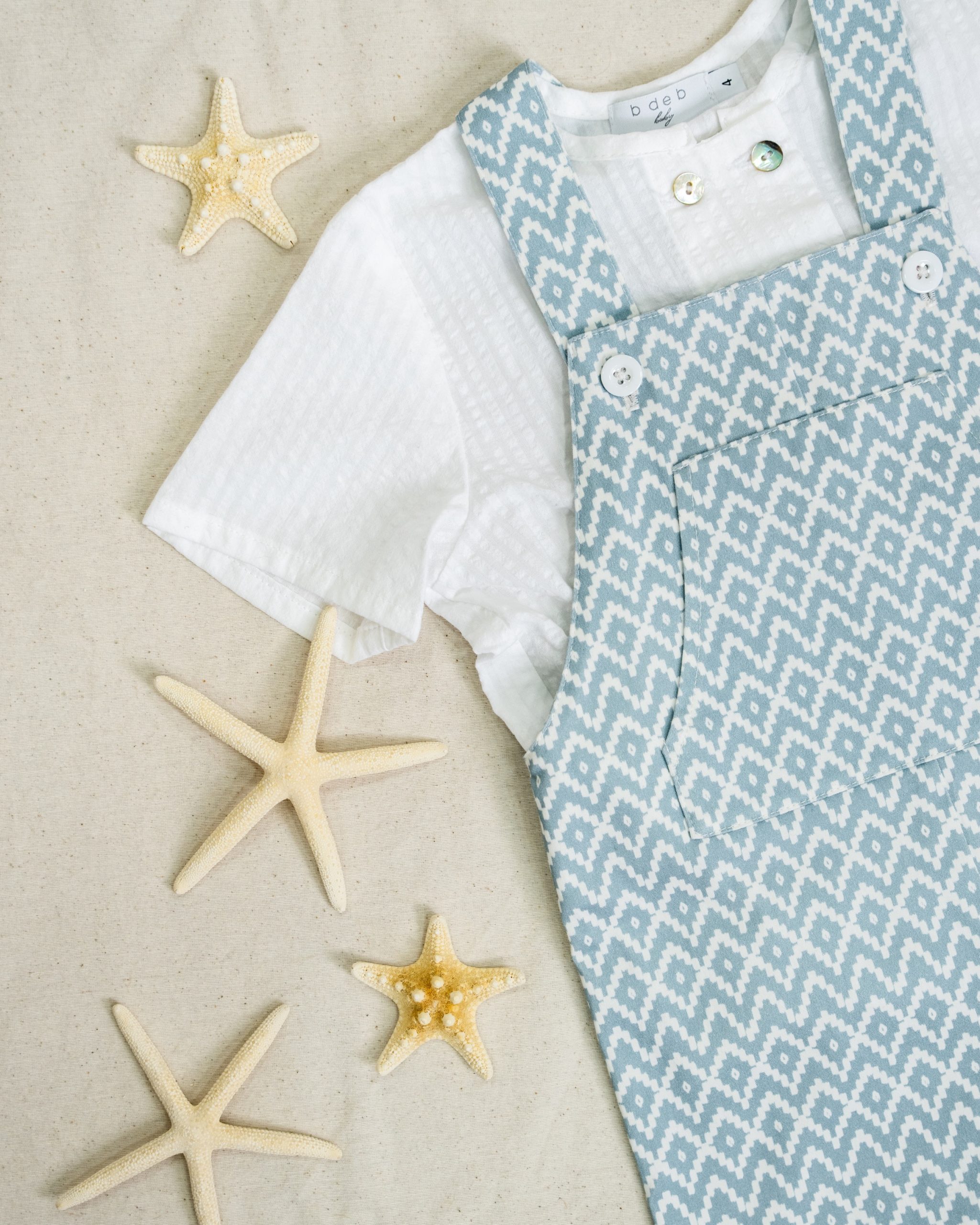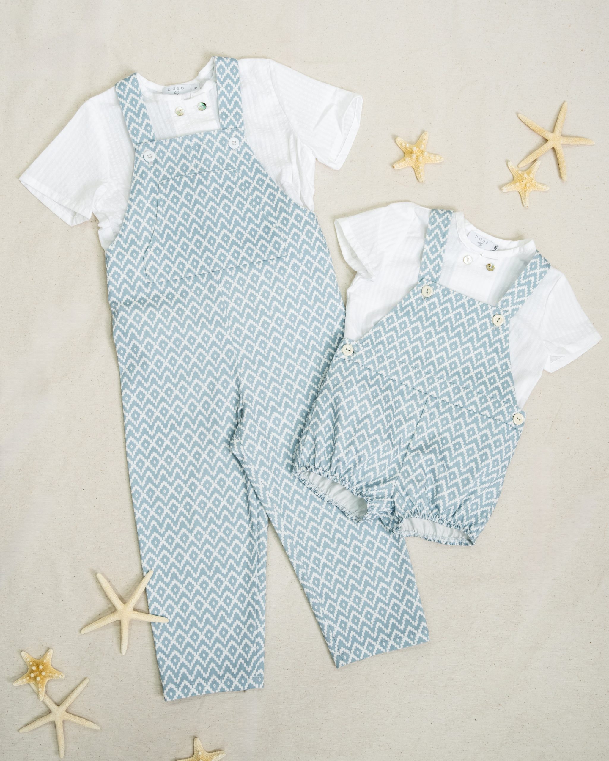 Peto unisex confeccionado en algodón con detalle de bolsillo delantero.