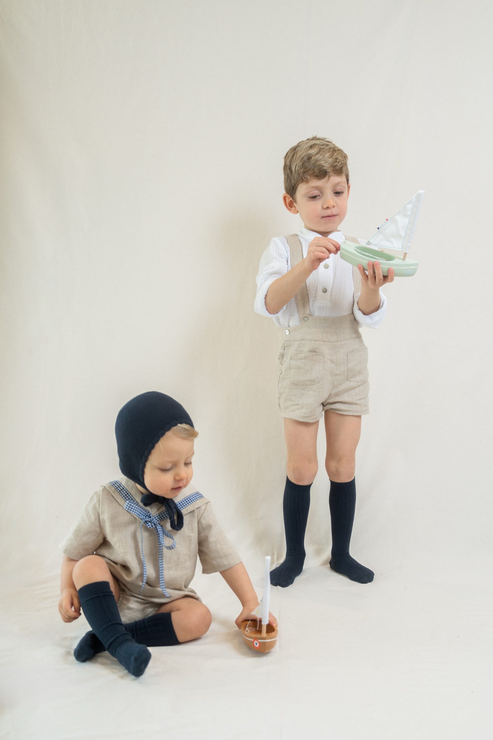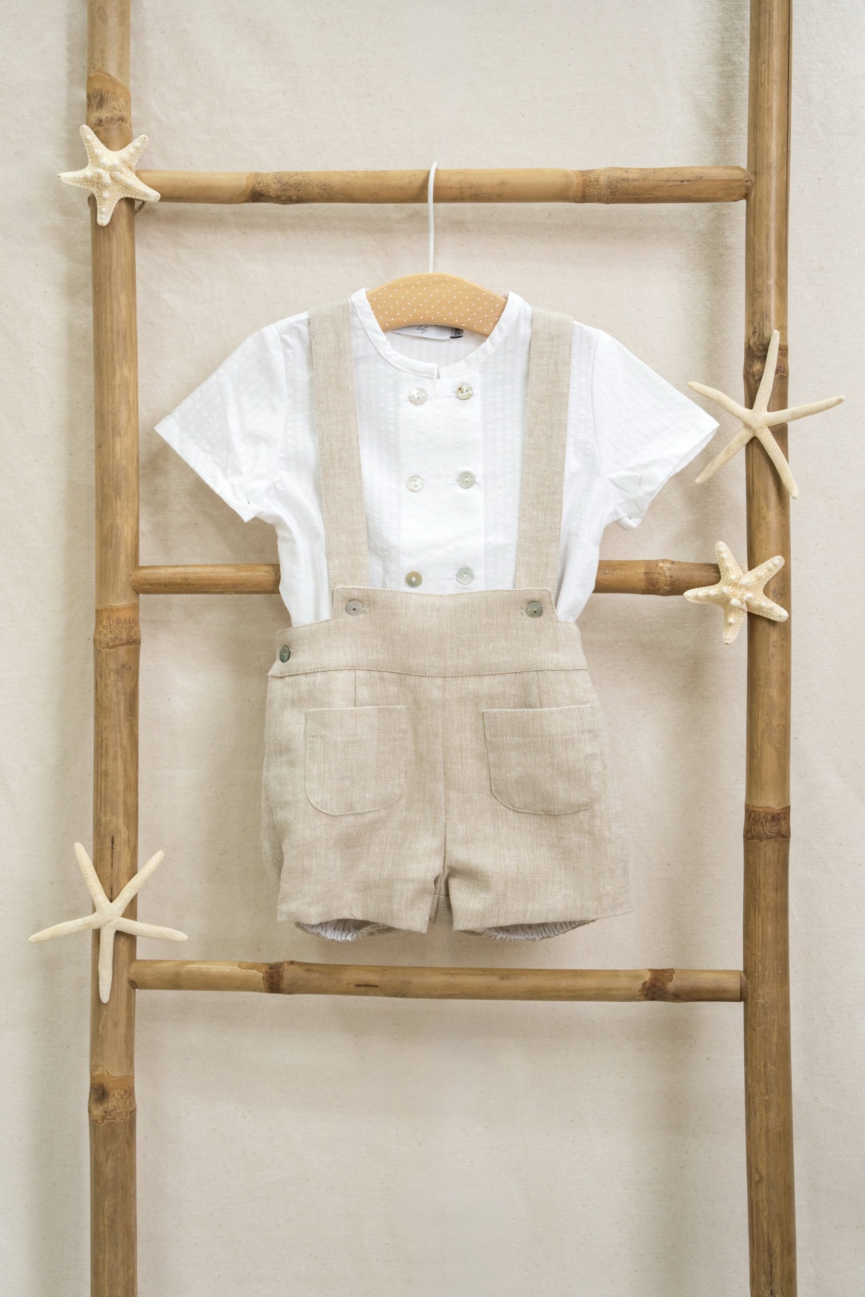 Pinocho con tirantes, confeccionado en lino y forrado en algodón 100%.