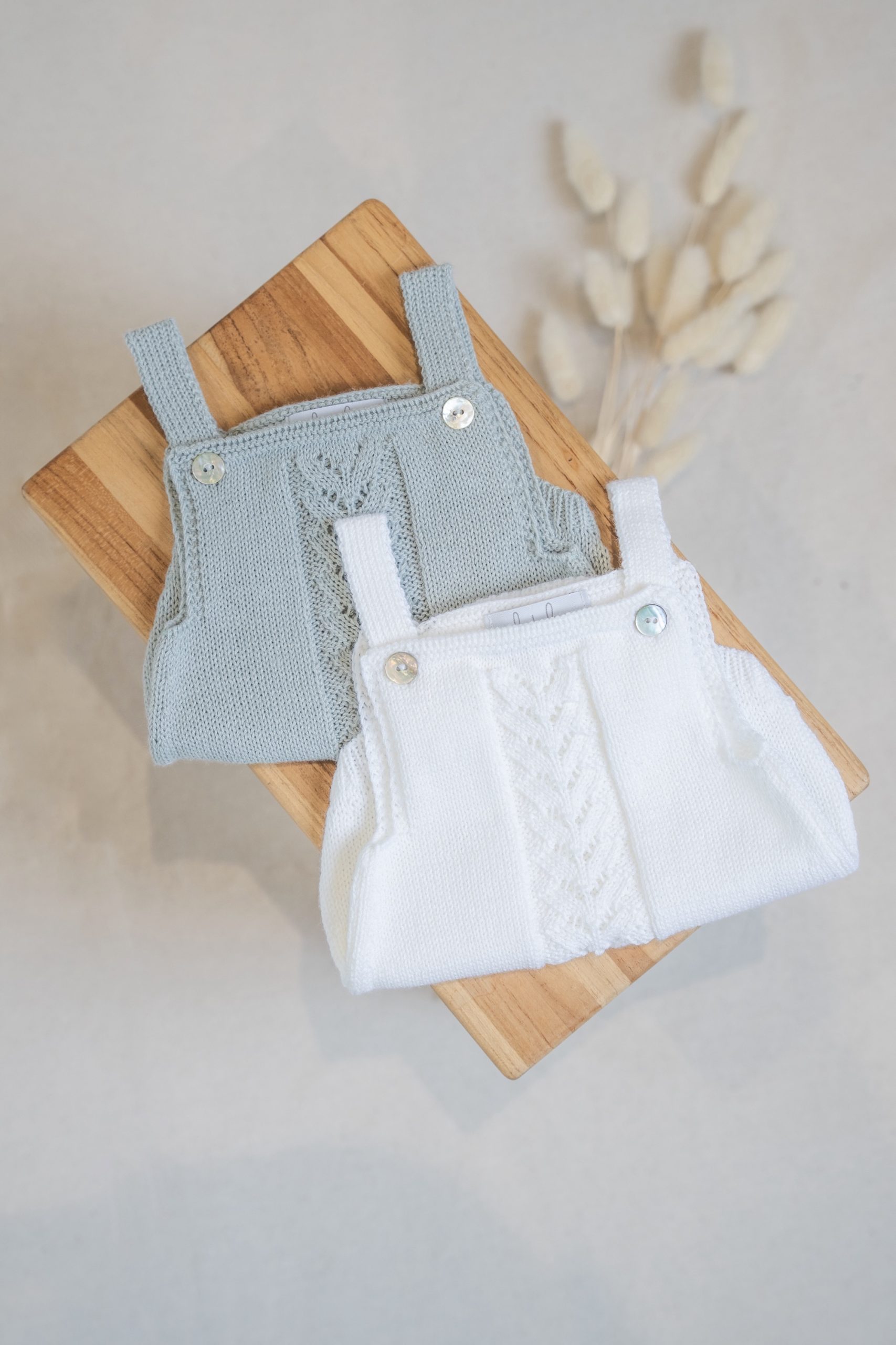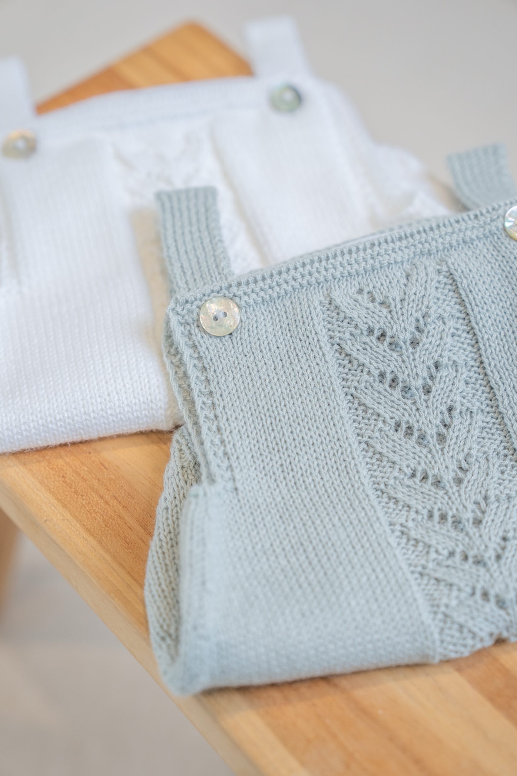 Lleva botones de nácar en la entrepierna para facilitar el cambio de pañal.